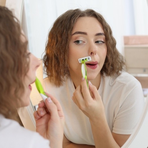 なぜ顔剃りをする人がいるかというと、毛の濃さや密度に個人差の問題もあると思います。頬付近の透明な産毛なら気にならないけど、口周りに生えている産毛は少し黒いから髭のように見える…、又は、一度剃ってしまってからまた産毛が生えてくるとじょりじょりした感覚がお肌のざらつきと混同して「また剃りたい…」となっていませんか?