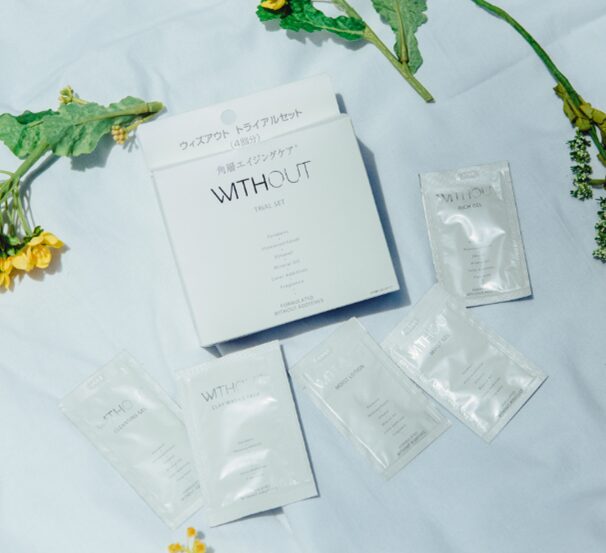 まずは4回分の「チーム力」を試してみませんか? WITHOUTでは、クレンジング・洗顔・化粧水・保湿ゲルがセットになったトライアルセットをご用意しています。 まずは2日間、お肌が「ホッとする」感覚を体験してみてくださいね!